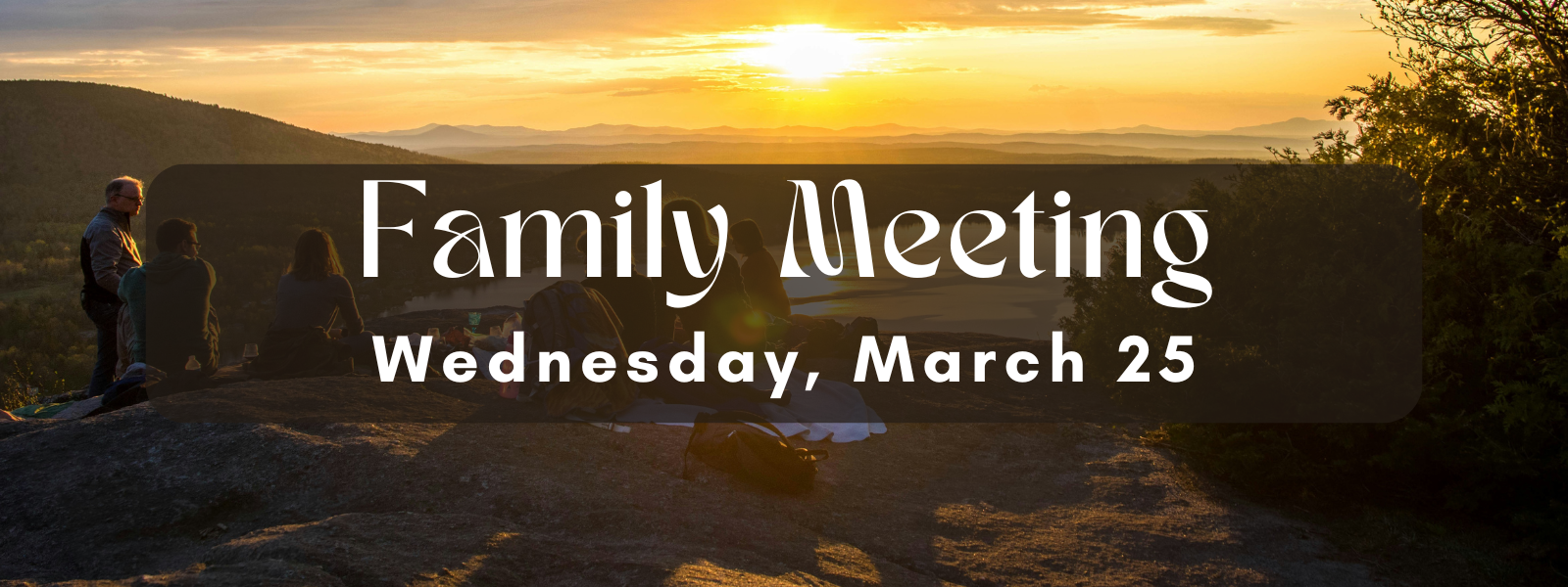1 event,![]() We will be having a Family Meeting on Wednesday, March 25. Everyone is invited to share a warm meal of pasta, sauce, bread, salad, and dessert served by the elders at 5:30 PM in the Sanctuary. The meeting will begin at 6 PM, with childcare provided. |